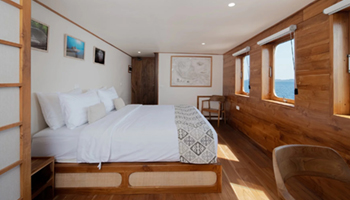 Na pokładzie Naga Biru znajduje się jedynie 7 starannie zaprojektowanych kabin w kilku kategoriach, co gwarantuje kameralność i wyjątkowy komfort podróży. Każda kabina jest prywatną przestrzenią do odpoczynku po dniu pełnym wrażeń — z indywidualnie sterowaną klimatyzacją, prywatną łazienką, eleganckim wystrojem oraz wysokiej jakości udogodnieniami. Kabiny Deluxe i Grand Deluxe oferują dodatkowo prywatne balkony i przestronne tarasy z widokiem na ocean, idealne na poranną kawę, popołudniowy relaks lub obserwowanie gwiazd po zachodzie słońca.
