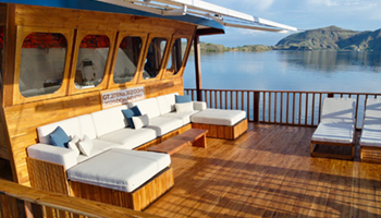 Rozległe przestrzenie zewnętrzne zapraszają do wypoczynku na świeżym powietrzu. Na głównym pokładzie znajduje się zacieniona strefa relaksu, natomiast górny pokład z leżakami i sofami oferuje panoramiczne widoki na archipelagi, wulkany i bezkres oceanu. To idealne miejsce na regenerację między nurkowaniami, sesję zdjęciową o złotej godzinie lub po prostu nicnierobienie w rytmie morza.