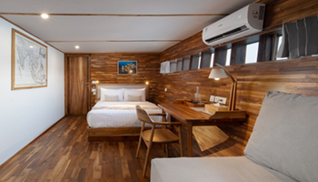 Na pokładzie Naga Biru znajduje się jedynie 7 starannie zaprojektowanych kabin w kilku kategoriach, co gwarantuje kameralność i wyjątkowy komfort podróży. Każda kabina jest prywatną przestrzenią do odpoczynku po dniu pełnym wrażeń — z indywidualnie sterowaną klimatyzacją, prywatną łazienką, eleganckim wystrojem oraz wysokiej jakości udogodnieniami. Kabiny Deluxe i Grand Deluxe oferują dodatkowo prywatne balkony i przestronne tarasy z widokiem na ocean, idealne na poranną kawę, popołudniowy relaks lub obserwowanie gwiazd po zachodzie słońca.