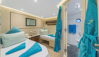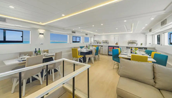 Na pokładzie Sea Serpent każdy detal sprzyja relaksowi po dniu nurkowania. Goście mają do dyspozycji 11 przestronnych kabin z prywatnymi łazienkami, klimatyzacją i wygodnymi łóżkami – idealne miejsce, by odpocząć po intensywnym dniu. Elegancki salon z panoramicznymi oknami i klimatyzowaną jadalnią tworzy przyjemną przestrzeń do wspólnych posiłków i spotkań. Na górnych pokładach znajdują się strefy wypoczynkowe z leżakami i miękkimi siedziskami – idealne do obserwowania zachodów słońca czy rozmów pod rozgwieżdżonym niebem.
